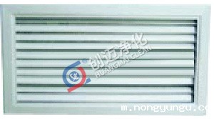百叶风口有普通型防雨形和可调性三种。材质为铝合金。适用范围:该风口用于有正压的房间自动排气、排风管道的出风口及通风竖井的出风口等。